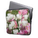 The sleeve is made of nice feeling material and seems very durable. I'm not sure how easy it'll be to clean, but the construction seems sound and the fabric is quick thick. I also like the double zipper. The printing is lovely and appears durable. The white on black contrast is nice, and the design very elegant.