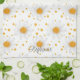 A cheerful floral pattern shower curtain featuring white daisy-like flowers with bold yellow centres, playfully scattered across a crisp white background. Small yellow dots are sprinkled throughout, adding a charming and sunny accent. Ideal for spring and summer designs, floral art lovers, and anyone drawn to fresh, happy, nature-inspired motifs.