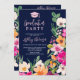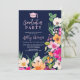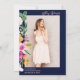 Calling Class of 2024! Elegant bright and bold modern spring summer flowers illustration with pretty oversized wild flower and brush script country garden graduation party invitation with a modern calligraphy typography with bright neon pink, orange, green and yellow flowers on navy blue background. Add your photo at the back.