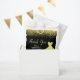 A beautiful bright yellow themed elegant watercolor dress gown on a black background with faux glitter at the top and bottom of the card.