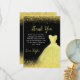 A beautiful bright yellow themed elegant watercolor dress gown on a black background with faux glitter at the top and bottom of the card.