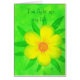 Painting of a bright yellow flower on a light neon green background printed on cards. Cover of the card says, You light up my life. Inside says, I'm glad you're in it. The text can easily be personalised on the template forms.