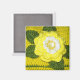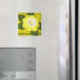 Bright Yellow Rose and Green Leaves Crochet Print Magnet
