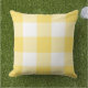 A bright yellow and white outdoor pillow with a large-scale gingham check pattern. The oversized yellow check brings sunny, cheerful energy to patio seating, garden furniture, or poolside chairs. A happy pattern that instantly brightens any outdoor space with warm summer style.