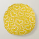 BRIGHT YELLOW WITH WHITE HEARTS AND FLOWERS ROUND CUSHION