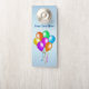 This paper door hanger has a bunch of brightly coloured balloons in a multitude of different colours with matching hanging streamers on a light blue background. Customise your text on the front and back with the template.