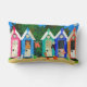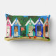 Brightly Coloured Beach Huts, Seagulls and Sand Lumbar Cushion
