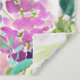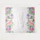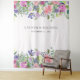 This stunning wedding photobooth backdrop features trendy watercolor flowers in shades of purple, pink, and magenta, with green leaves on a clean white background. There is a place to add your names or the event name, as well as the date.