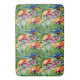 Pretty red, green, blue and yellow watercolor parrots and tropical flowers and plants bath mat.