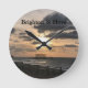 The clock did not take as long to arrive as I thought it might and was extremely well packaged. I didn't do the measurements so I didn't realize it is a little smaller than the average clock but that does not matter (just make sure you check if that's important to you).It is really nifty! It seems very solid and well made not flimsy at all. It has been going well and has kept good time in its few weeks on my wall. Nice product. Gets noticed too! Nicer in real life than the picture but true to the picture