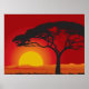 Briliiant Red Sunset Under The Bonsai Tree Poster