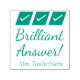 This inspirational rubber stamp design features the inspiring message "Brilliant Answer!" and a personalised teacher's, educator's or tutor's name. It also features a decorative check mark. It could be used by a school teacher, educator, instructor, or tutor when grading student work, to indicate that a student has done an exceptional job.