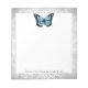 Jot down notes and reminders with a personalised Brilliant Blue Butterfly Notepad. Notepad design features a brilliant butterfly adorned with a foliage vine against grey grunge background and space to personalise with your name. Additional matching stationery items available with this design as well. If you need assistance with personalisation, please contact me directly.