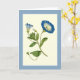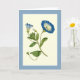 A fine art blank greeting card from the Curtis Botanical Magazine. An illustration of a small blue morning glory flower vine (Small Convolvulus or Bindweed).