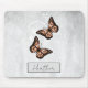 Add an elegant touch to your computer workspace with a Brilliant Copper Butterflies Personalised Mouse pad. Mouse pad design features brilliant butterflies resting on a white floral vine against a grey grunge background. Additional items available with this design as well.