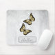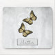 Add an elegant touch to your computer workspace with a Brilliant Gold Butterflies Personalised Mouse pad. Mouse pad design features brilliant butterflies resting on a white floral vine against a grey grunge background. Additional items available with this design as well.