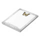 Jot down notes and reminders with a personalised Brilliant Gold Butterfly Notepad. Notepad design features a brilliant butterfly adorned with a foliage vine against grey grunge background and space to personalise with your name. Additional matching stationery items available with this design as well. If you need assistance with personalisation, please contact me directly.