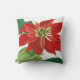 A throw pillow of a poinsettia flower with a vibrant red hue, set against a backdrop of lush green leaves, creates a striking visual that embodies the spirit of the season. The vintage charm of this botanical print brings a sense of tradition and timeless beauty, making it the perfect addition to your holiday home.