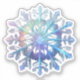 A detailed snowflake with a vibrant blend of blue and pink hues stands out against a white background. The intricate patterns are highlighted, giving it an illuminated and almost three-dimensional appearance.