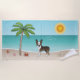 Brindle Boston Terrier At A Tropical Summer Beach Towel