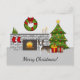 Brindle Boston Terrier In A Festive Christmas Room Postcard
