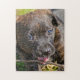 A baby, brindled puppy is chewing on a piece of wood that she found on a cool March morning. The closeup shows her happy face. If you love puppies, our "Brindle Puppy Chewing on Twig Jigsaw Puzzle" is perfect for you. Frame your completed puzzle and hang it on the wall. Order yours today!