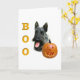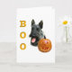 Your AKC Scottish Terrier dog breed says Happy Halloween with a BOO! Treat someone to a Halloween brindle coated Scottish Terrier gift!