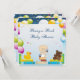 Fun and colourful Bring a Book Baby Shower invites for boys with a cute happy baby boy with blue cupcakes sitting on a pile of books. On either side of him is a pile of books with a cute pretty teddy bear on one and rubber duck on the other. There is a beautiful colourful balloons background. These bright and cheerful invitations are decorated on both sides. All of the text is fully customisable to meet your needs and you can change the font style, colour and size of font if you desire. If you need any assistance customising your product please contact me through my store and I will be happy to help. Baby from resaleclipart.