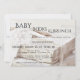 Romantic book theme baby shower invitation in warm off-white colours with a book and peony flower. Beautiful for a book loving couple or mum.