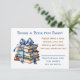 Send this sweet little "Bring a Book for Baby" card into your baby shower invitation to encourage baby shower guests to bring a book for baby, and to write a note inside. Striped back, and front has a watercolor stack of books in blue and brown.