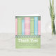 A cute baby shower bring a book thank you card that have pastel pink, green and blue colours. The books are sitting on top of cute polka dots.
