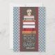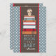 An adorable little owl is perched atop a stack of books in shades of red and blue on this cute invitation for a bring-a-book baby shower. Text on the back has sample text for asking guests to also bring their favourite children's story to start the Mum-to-be on creating baby's library. In trendy brown and denim blue with polka dot pattern background, this lovely design is sure to please any new mummy. Also available are bookplate stickers to include in the invitation for each guests to sign and label their book gifts.
