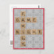 Bring back "game night"! Wooden game tiles spell out "Family Game Night" over monotone game boards. Add family faces to make a unique family postcard.