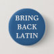 A blue "Bring Back Latin" badge. A recent report released in the UK recommended that latin be taught in primary schools. Latin, ancient Greek and Classics in general used to very popular but have declined in recent decades so only a handful of state schools now teach them. Use this sticker to show your support for the campain to bring ancient languages back to British schools!
