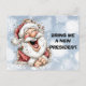 A hilarious Christmas postcard of Santa Claus asking to "Bring me a new president"