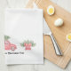 This kitchen towel has a red car with an evergreen tree, on the top. On either side of this image there are evergreens with big, red bows. The text reads, "Bringing Home the Christmas Tree” and it can be customised. This design is on the top and bottom of the towel.