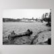 Old photo of hunters with a deer in their canoe. Paul Smith's Hotel, Adirondack Mountains is in the background, 1903.