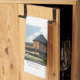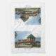 A tea towel with the Bristol Virginia Train Station , Images are placed to be viewed properly folded over an oven door handle.