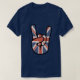 Cow says "moo," big rock salute hand with Union Jack says, "woo!" Colour, t-shirts, sweats, cards, gifts.