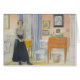 Vintage image of young woman in old-fashioned skirt and top posed beside a desk. Fine art by Swedish painter Carl Larsson.