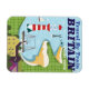 Britain vintage train vacation poster. Visit Britain lighthouse cartoon ocean travel poster