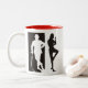 Silhouette of John Steed and Emma Peel of British TV fame. Retro 60's spy action on a two-tone coffee cup. Put some adventure in your morning coffee!