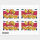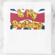 The Union Jack pattern provides a strong and recognisable visual context, enhancing the celebratory nature of the piece.