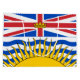 This design features the flag of the Canadian province of British Columbia (BC), which is the most western province in Canada, located between the Rocky Mountains to the east and the Pacific Ocean to the west. As of 2020, it has a population of just over 5 million. The capital of British Columbia is Victoria, a city named after Queen Victoria, who ruled during the creation of the original Canadian colonies. However, the largest city in the province is Vancouver.