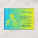 A business card with a colour shaded map of the British Isles. Company details on the front with name and contact details on the back with a matching background.