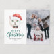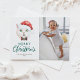 Merry Christmas! Send Christmas wishes to family and friends with a cat-themed Christmas postcard. It features a watercolor illustration of a cute white British shorthair cat with a Santa hat and tartan bow tie. Personalize by adding a photo, name and other details. This cat Christmas photo postcard is perfect for cat lovers and pet owners.