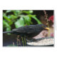 notecard with male blackbird on garden feeder