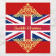 A stylish classy design with a British red white and blue Union Jack flag in a United Kingdom theme, ideal for London weddings or for British couples getting married abroad. Featuring vintage lace pattern elements and calligraphy script in gold tones,