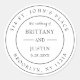 Designed to match our modern Brittany wedding collection, these simple, black and white, circular return address labels feature the words "the wedding of" written in hand-lettered calligraphy script and your names and wedding date written in elegant serif typography. Use them on invitations for your wedding, engagement party, couples shower, rehearsal dinner invitations or your save the date announcement. Be sure to browse the other items in this suite to create a chic, coordinated look for your special day. Please contact me at dawn@albamarie.com if you need help customising your address label or need me to create additional matching products. I'd be happy to help!