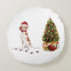Brittany Funny Christmas Dog and Tree Round Cushion